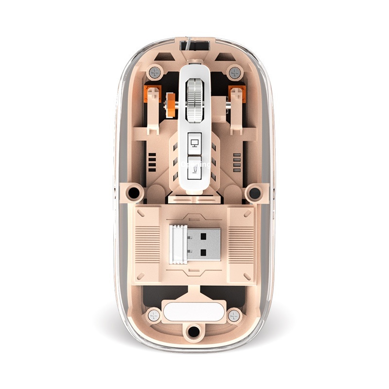 Brand:Hongtai,Item Number:HT - MS - 033,Time to market:2024,Type:Creative Transparent Mouse,Mouse size:Ordinary mouse 100-120mm,Connection method with a computer:2.4G+Bluetooth,Compatible Models:Laptop,Optical resolution:1600dpi,Number of Buttons:5,Interface:Bluetooth,Wireless Transmission Frequency:2.4GHz,Does it support ergonomic design?:Support,Adjustable resolution:Four-speed,Operating distance:10m,working method:2.4G + BT1 + BT2,Direction of the scroll wheel:Vertical,Long cable length:Wireless,Product Dimensions:113*57*25mm,Product weight:76g,Custom Printing:Sure,Fastest shipping time:Fastest same-day shipping,After-sales service:One-year warranty,Package contents list:Packaging color box + TYPE-C charging cable + user manual,Color:Mauve Green, Space Blue, Youthful Pink, Vibrant Orange, Frost White, Space Gray,Main downstream platforms:Independent Site, , Others,Main sales regions:North America, Northeast Asia, Middle East, Others,We have authorized private labels available:yes,Is it exclusively for cross-border export supply?:yes,Customizable:Support,Is it a patented source product?:yes,Patent Number:ZL 2023 3 0720688 .0,Patent Type:Appearance Design Patent,Applicable objects:Digital products such as computers, tablets, and phones,Power supply mode:Comes with a charger