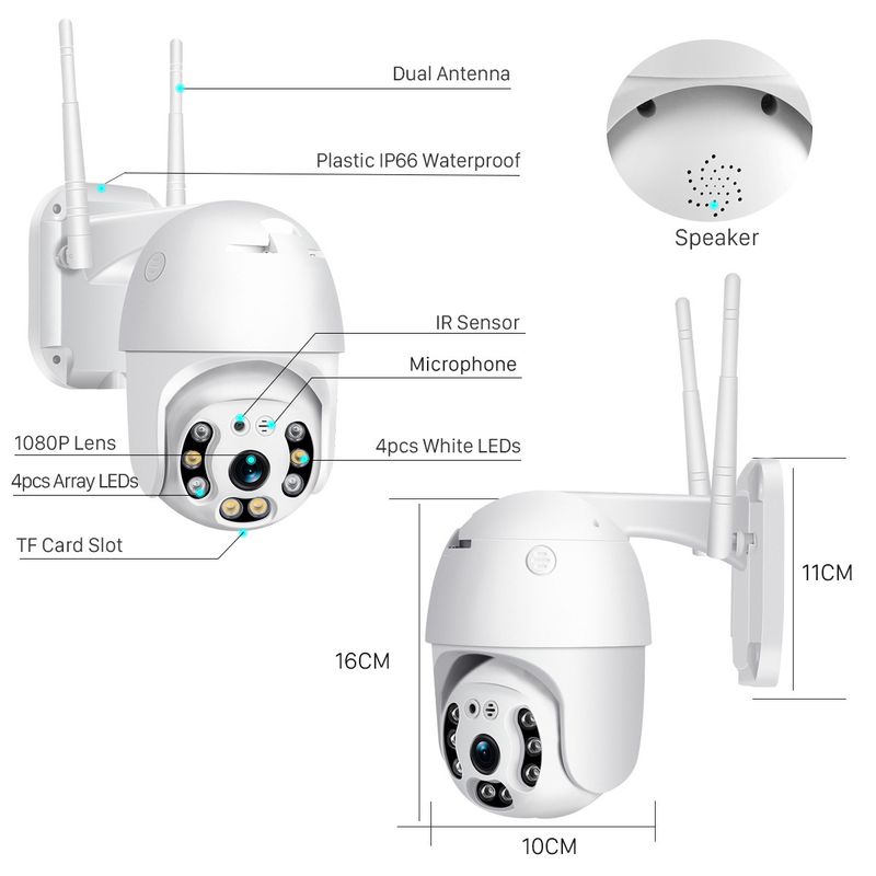 Built-in omnidirectional noise-canceling microphone and speaker, supports two-way real-time audio transmission