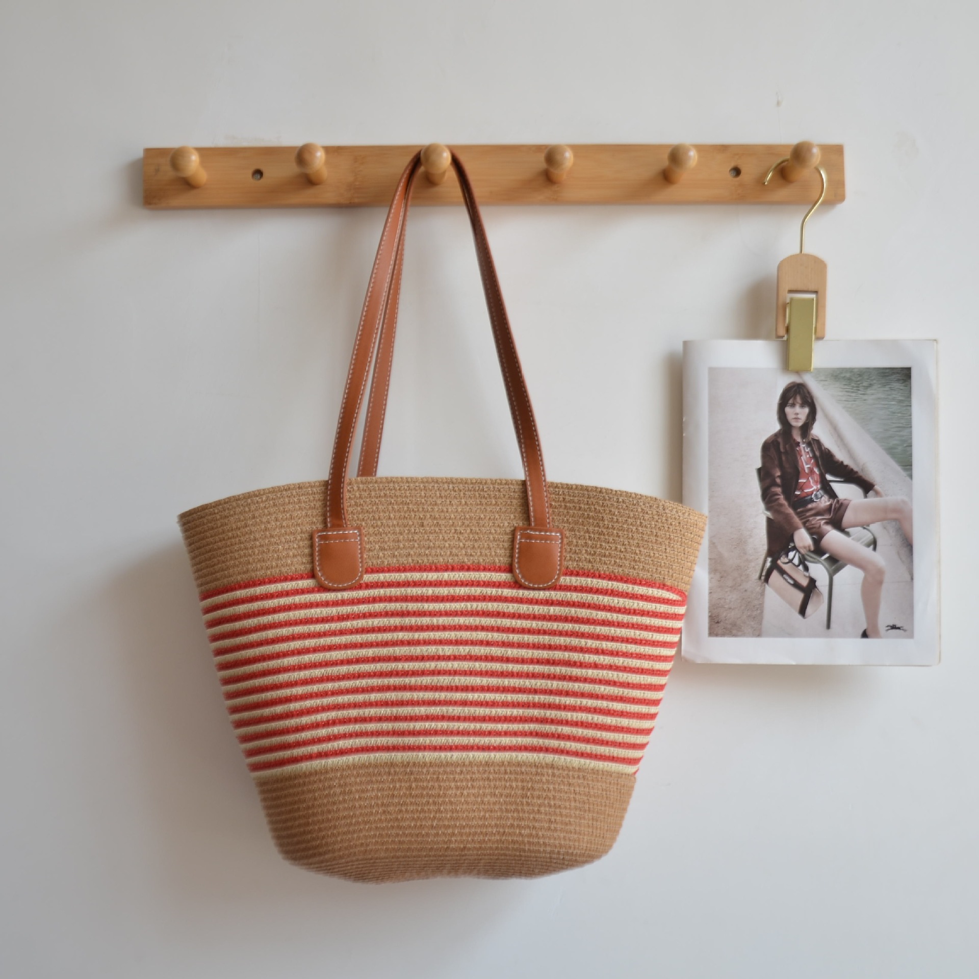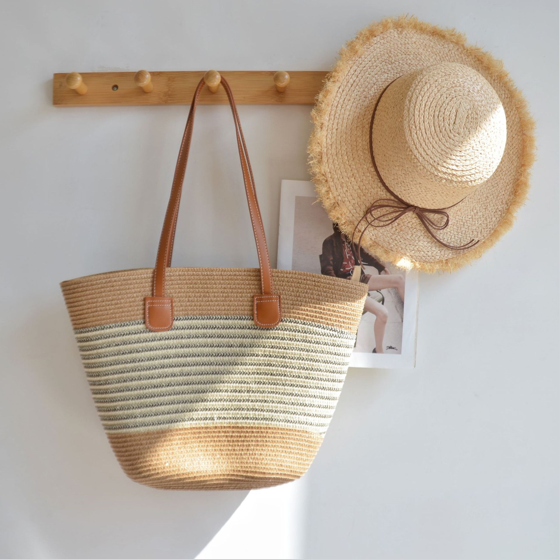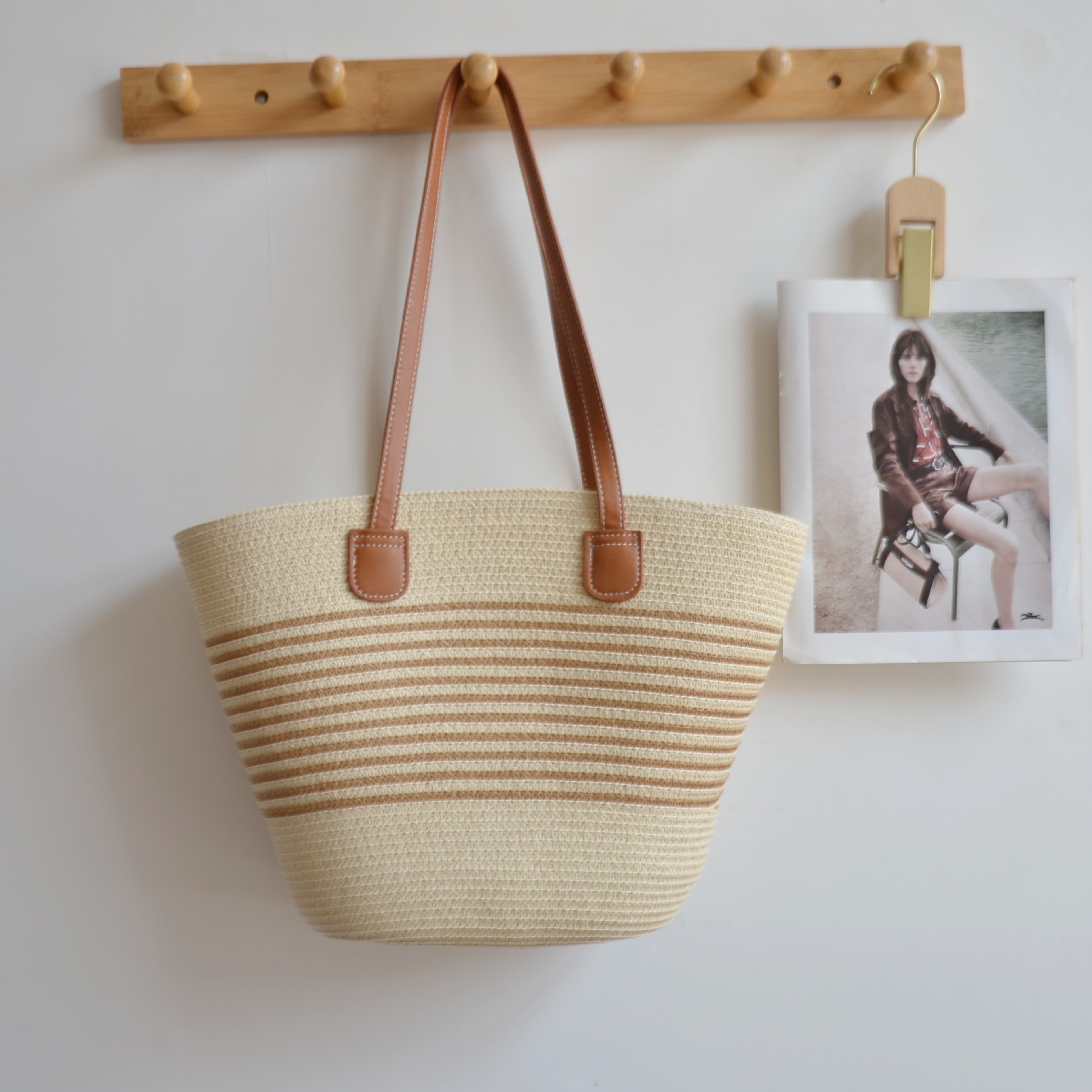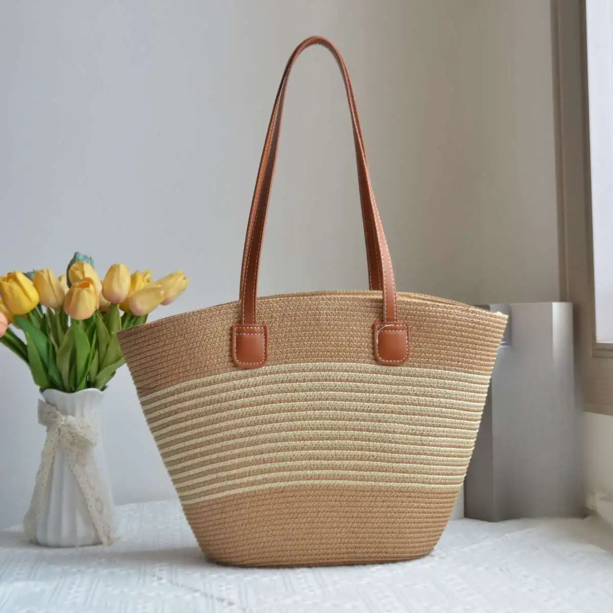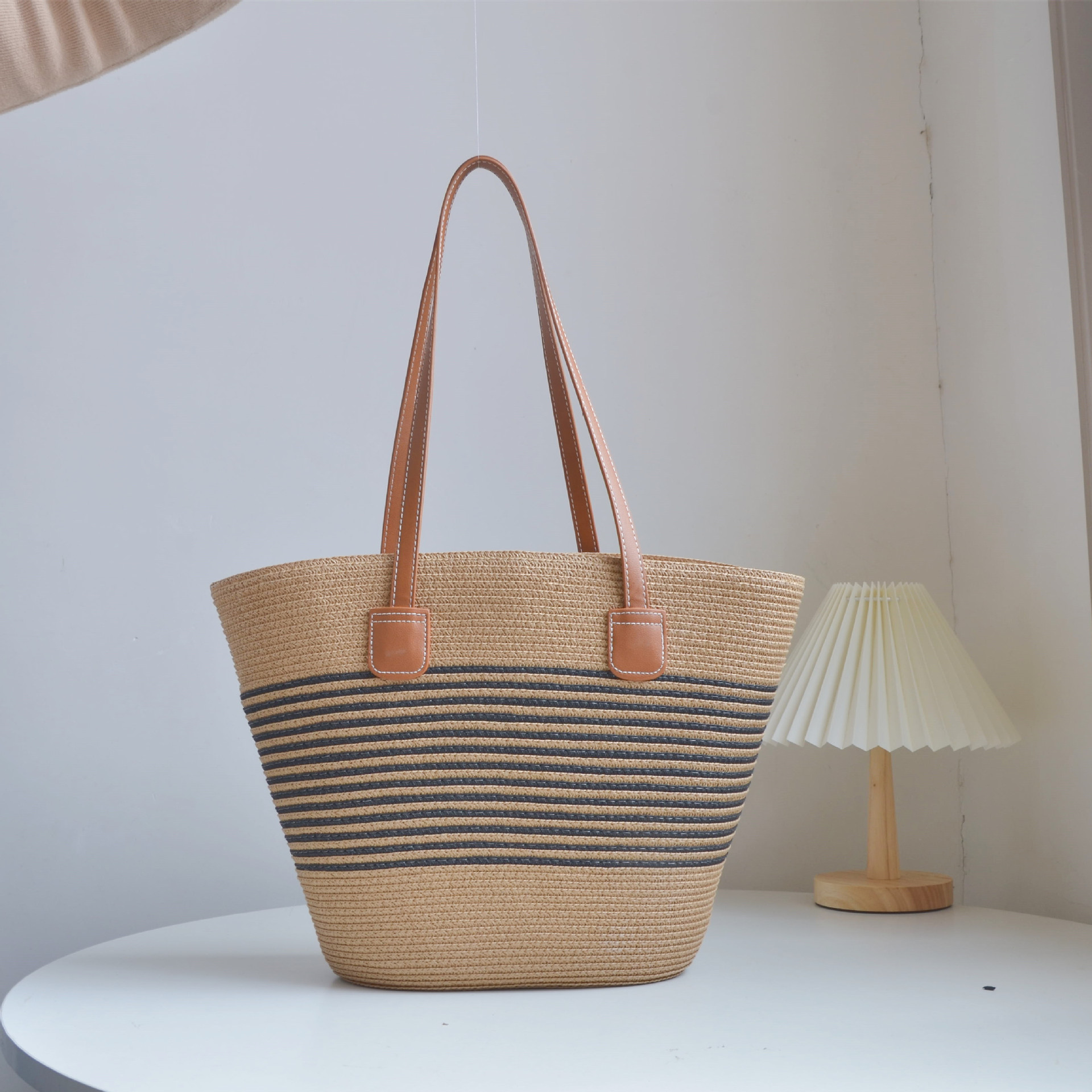 Temperamento e grande capacità Erba 2023 Nuova borsa da donna a righe alla moda a spalla singola intrecciata fatta a mano sotto le ascelle