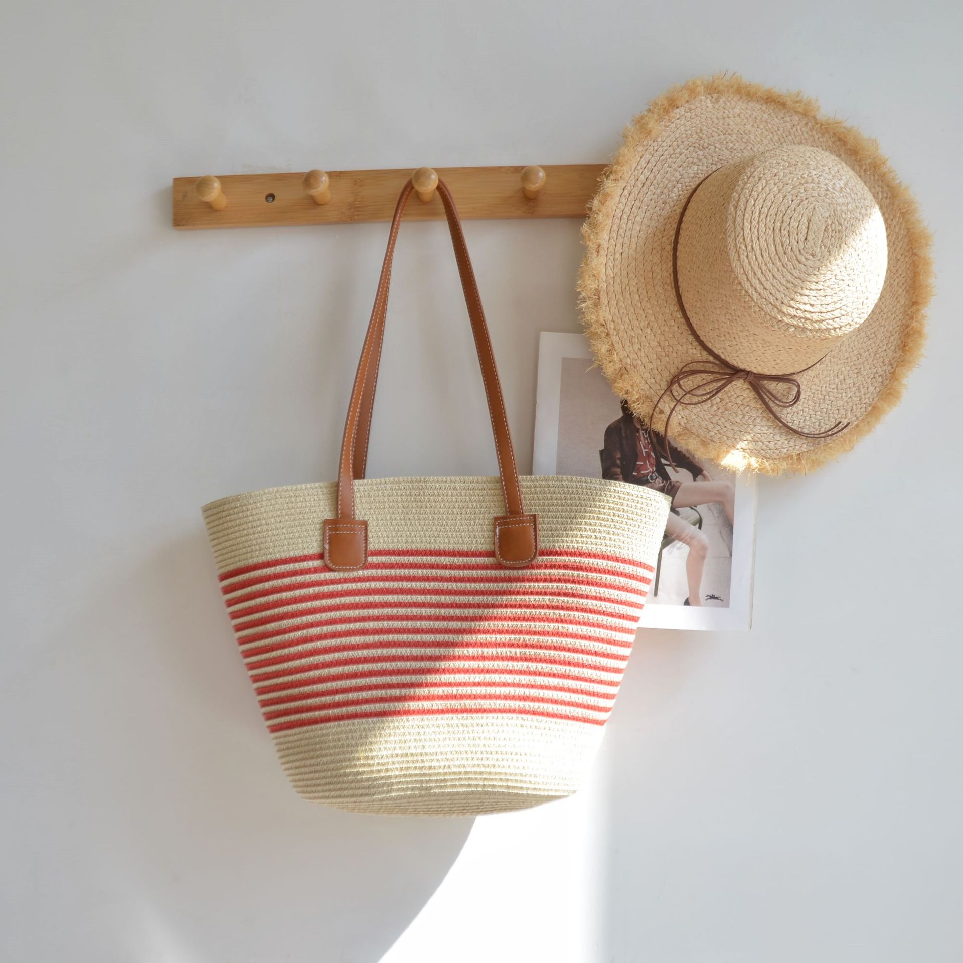 Temperament and Large Capacity Grass Woven Bag 2023 New Handmade Woven Bag Single Shoulder Underarm Bag Fashion Striped Women's Bag