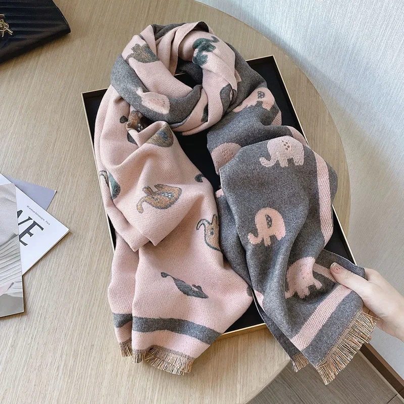 Temperamento femminile simpatico elefante finto cashmere morbido scialle invernale caldo Sciarpa coreana della marea