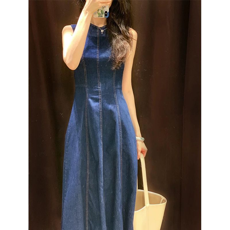 Temperamento estivo squisito, abito in denim di alta qualità per donna, nuovo stile 2025, il modello senza maniche più popolare dell'anno