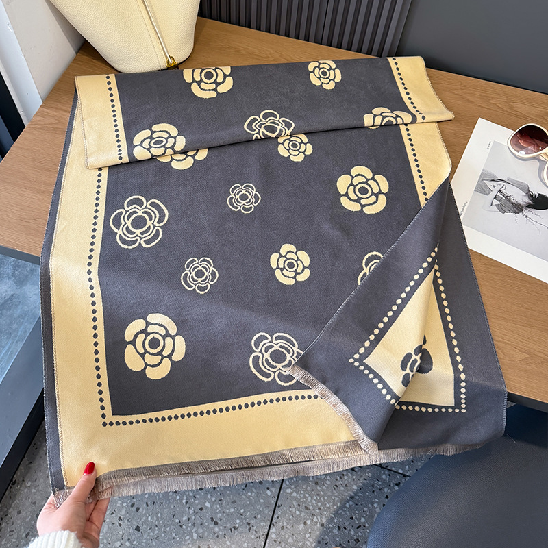 Temperament small fragrance scarf women's versatile coat decoration warm camellia scarf dual-use imitation cashmere shawl thick version