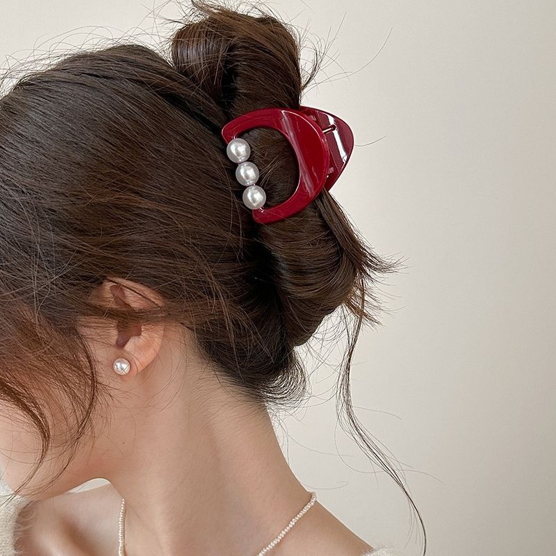 Temperamento Rosso Mezza Legatura Capelli Coreano Edizione Perla Piccola Fermaglio per Capelli Parte Posteriore della Testa Temperamento Forcina per Capelli Senso Avanzato Fermaglio Squalo Irregolare