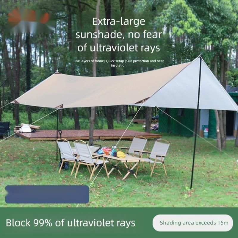 Tenda da campeggio nera per esterni, protezione solare UV, rivestimento argentato, telo parasole portatile