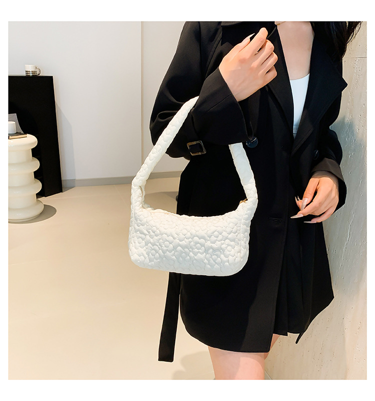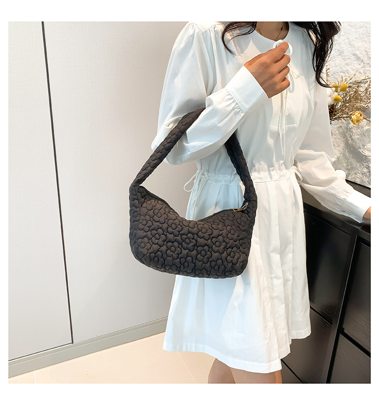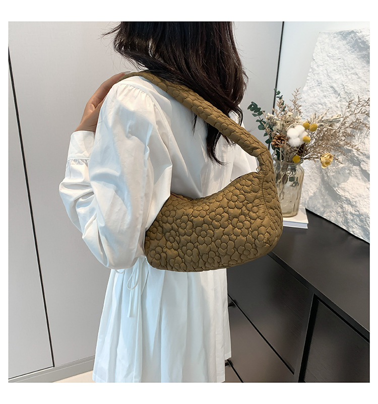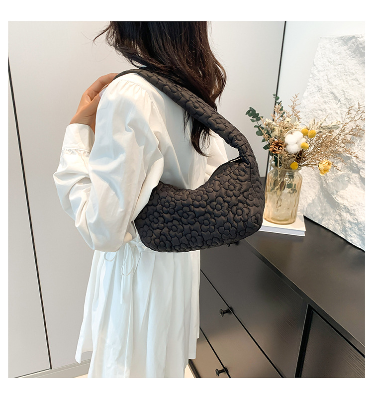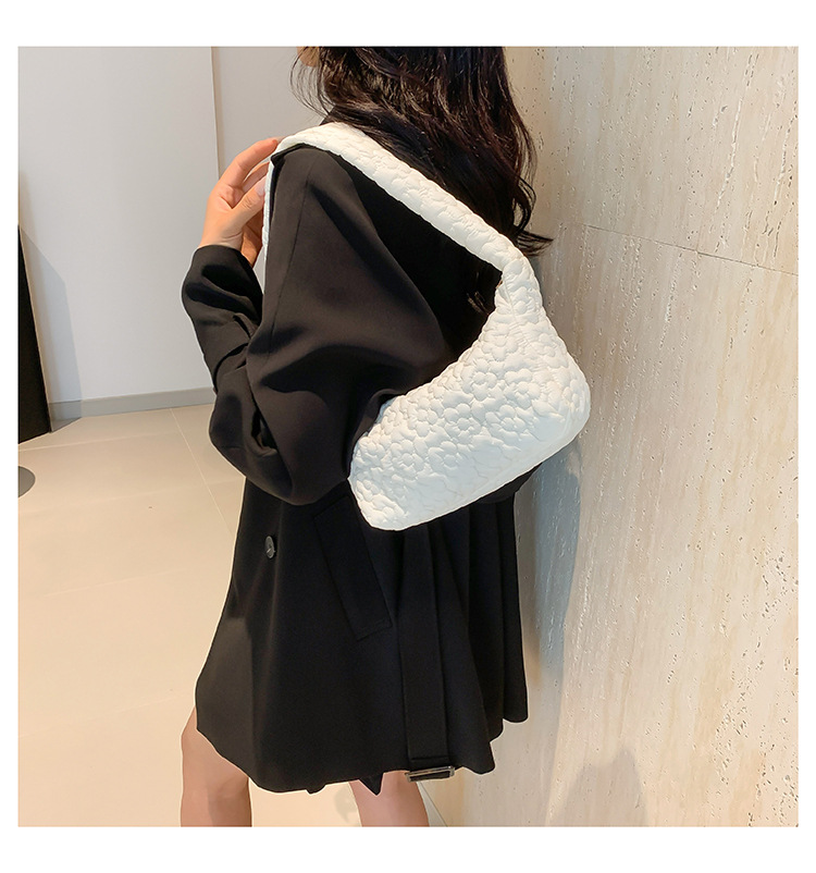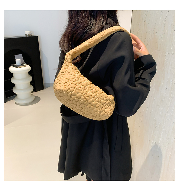 Fabric 2024 New Fashionable Texture Embroidery Thread Flower Elegance Korean Edition Simple Underarm Single Shoulder Handbag for Women
