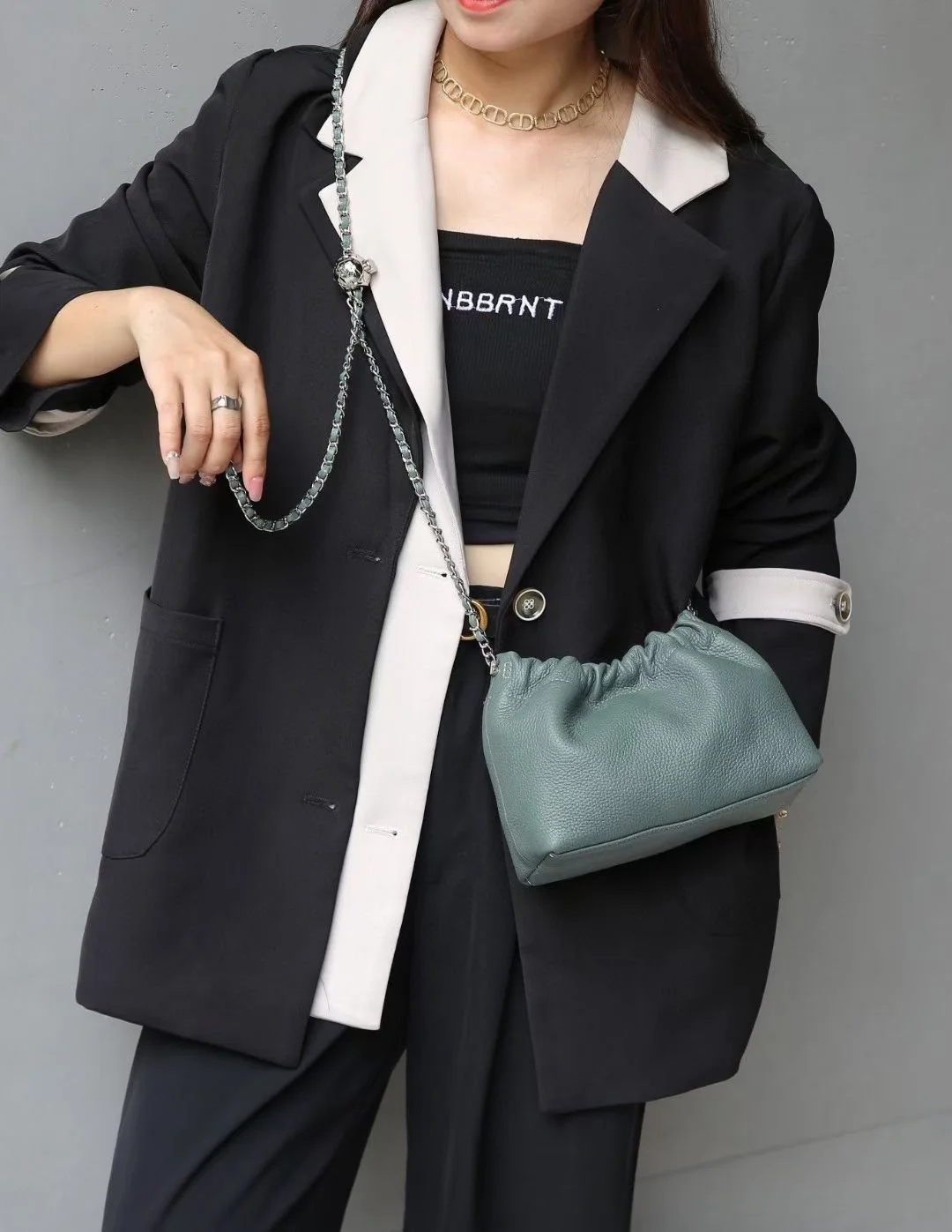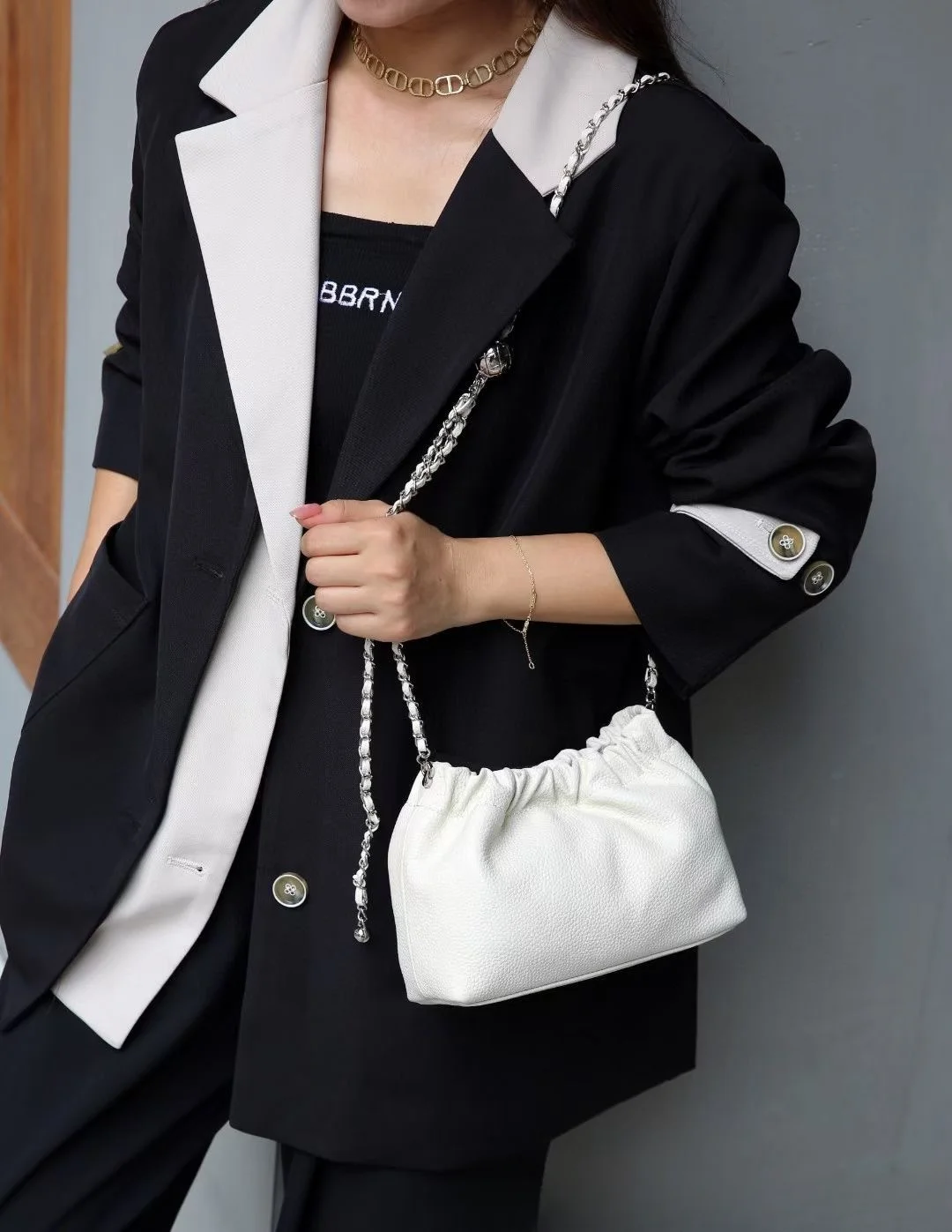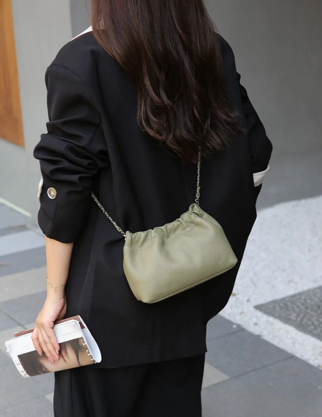 This year's popular gold ball chain armpit bag for women 2024 new cloud pleated bag real cowhide single shoulder crossbody bag trend