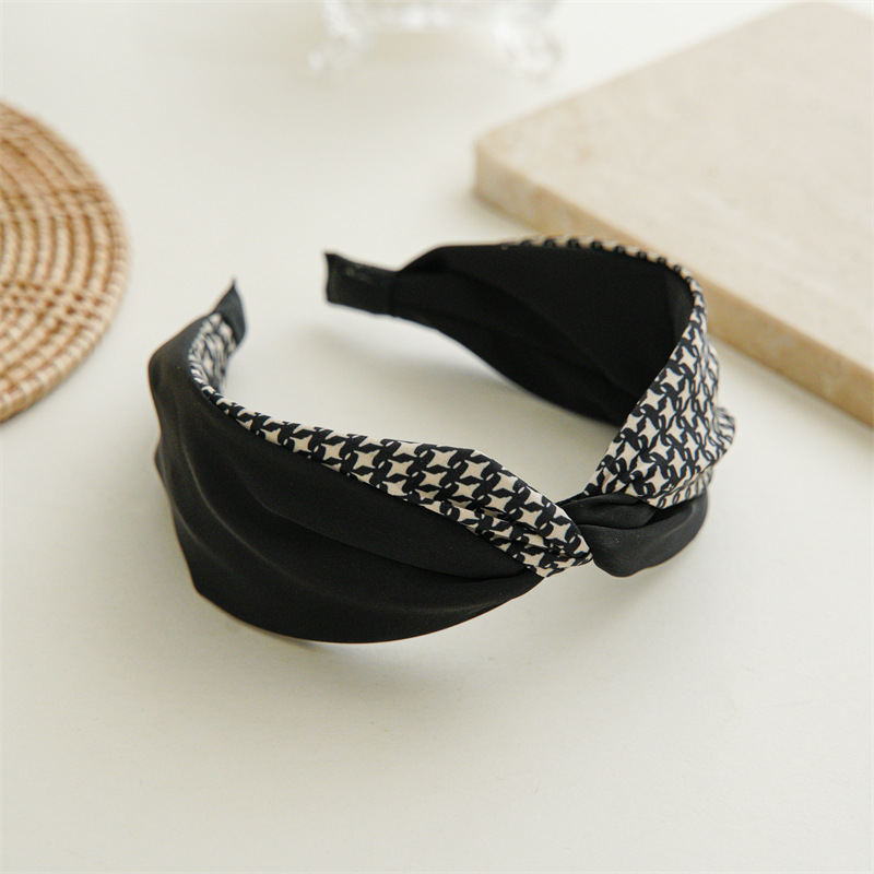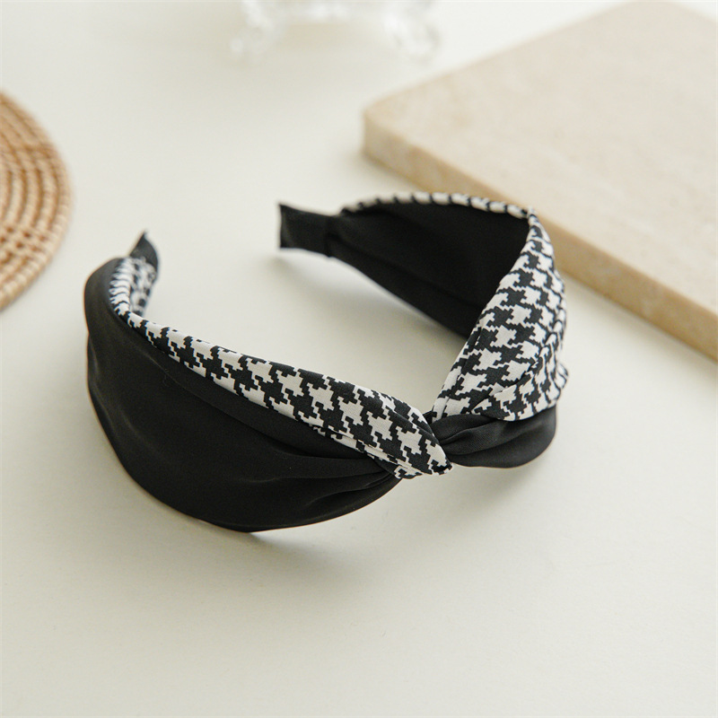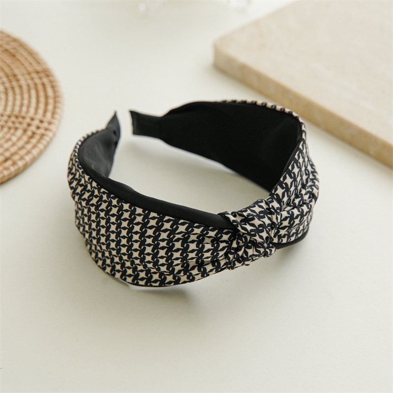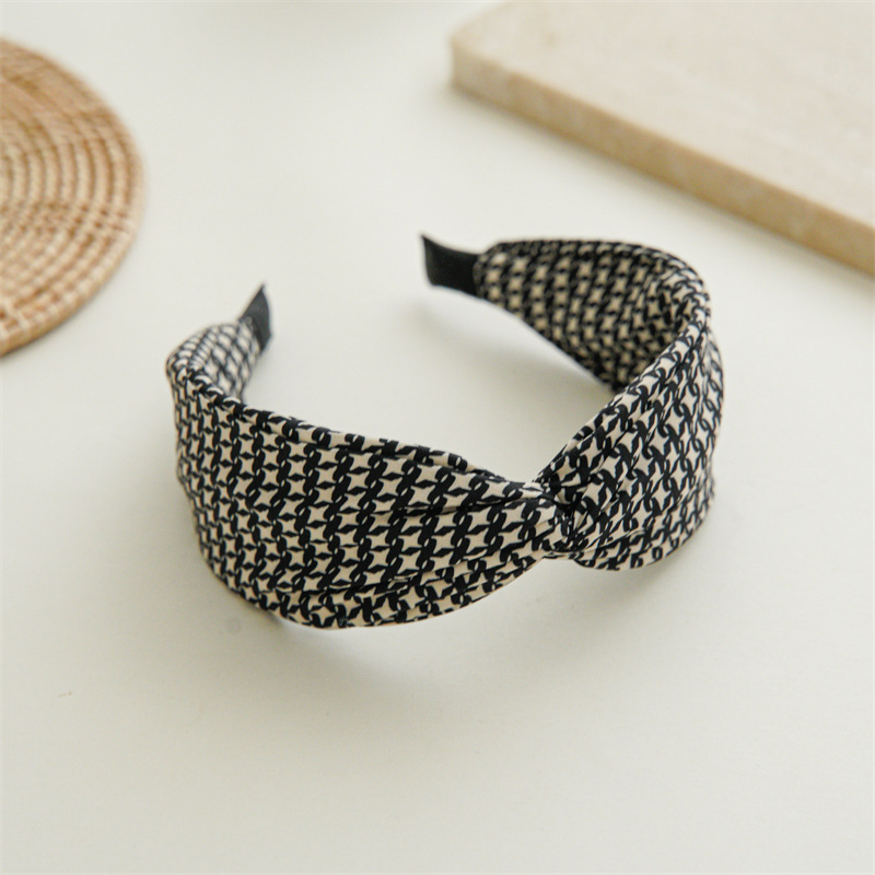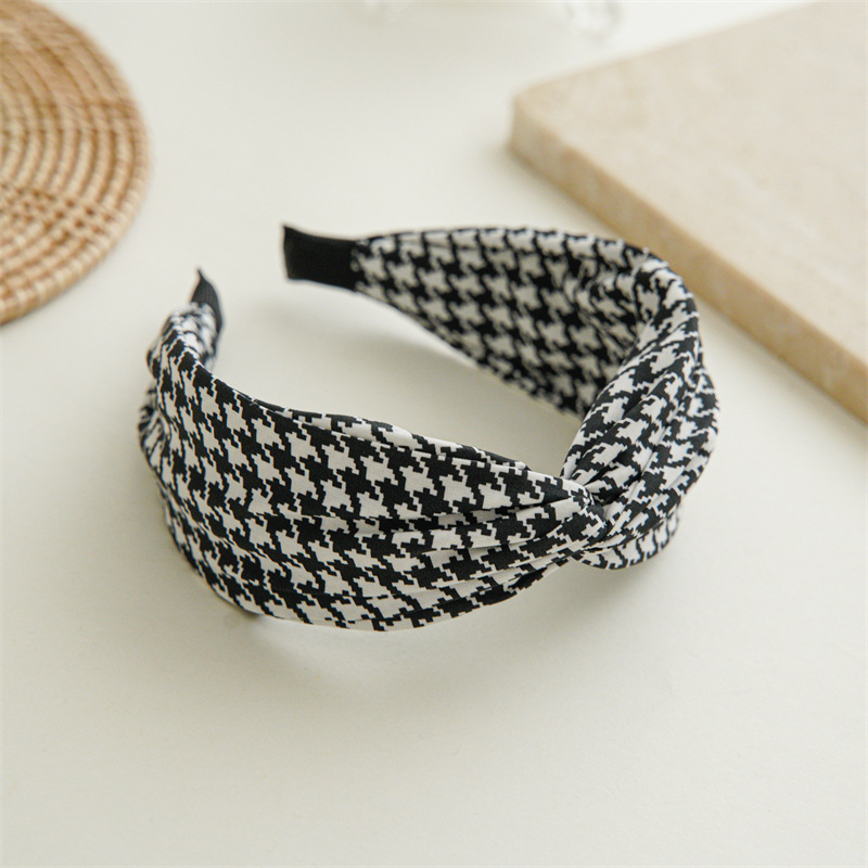 New Thousand Bird Grid Wide Edition Knot and Pressing Hair Hoop for Women's Elegance and Style 2023 New Autumn High Head Top Hoop in Three Styles