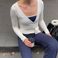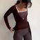 Top a maniche lunghe con scollo a V e scollo a V sul davanti – Blusa elastica ed elegante per l'allenamento e il lavoro (S/M/L, bianco/rosa/kaki/marrone, collezione autunnale)