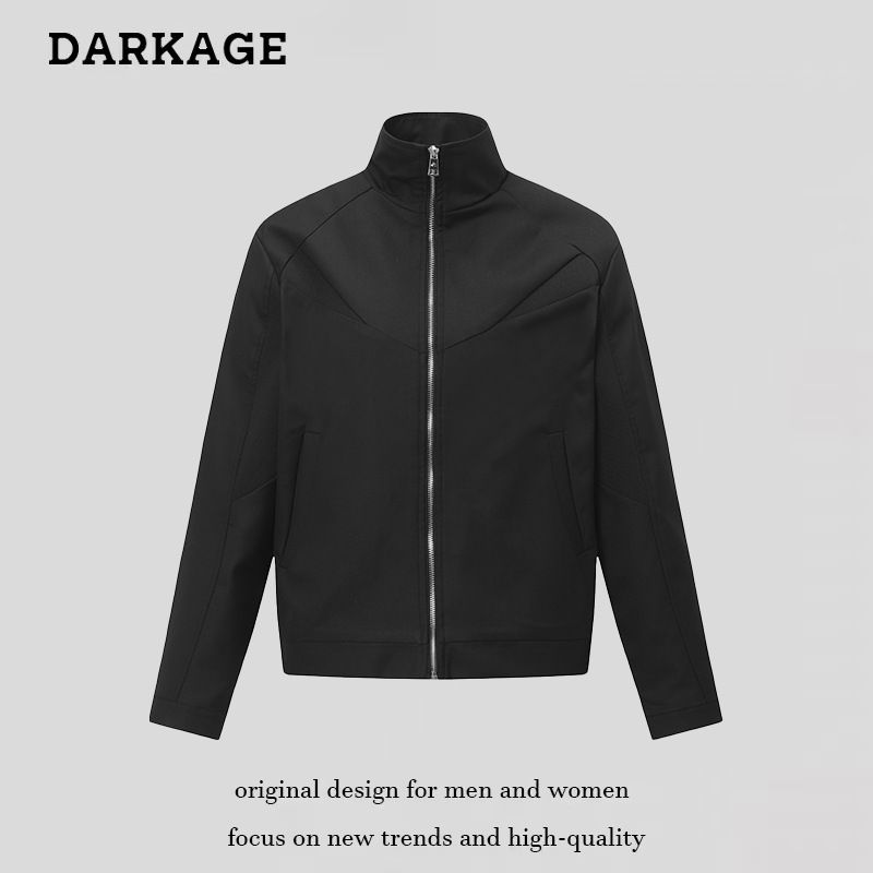 American Style Solid Color Zipper Stand Collar Heavy-duty Autumn Winter Long Sleeve Top Unisex Loose Street Style Couple Cool Jacket