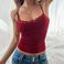 Top da donna, canotta sexy aderente con ombelico scoperto, tinta unita, con inserti in pizzo