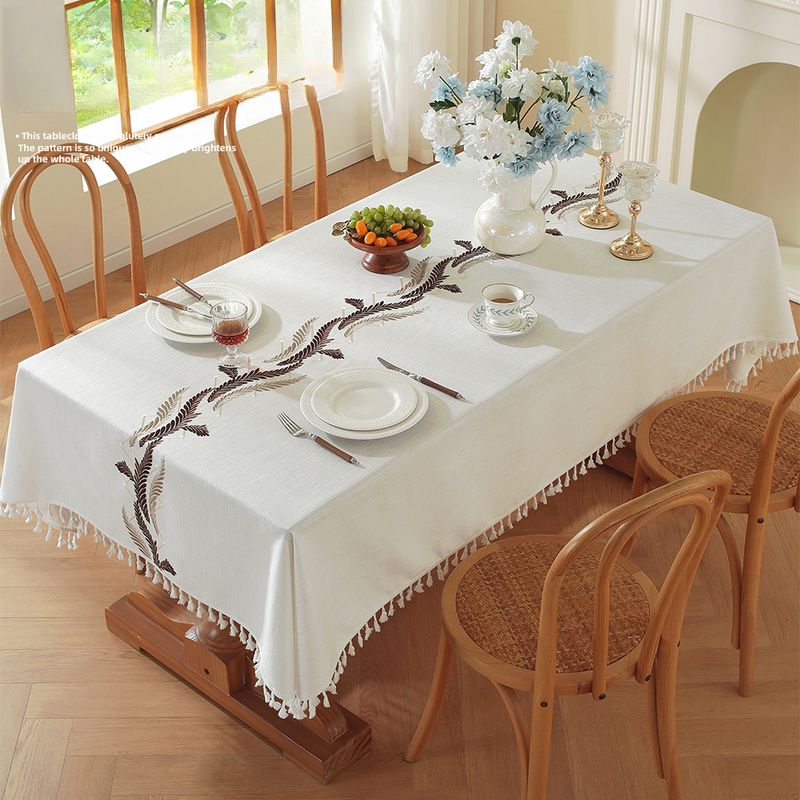 Tovaglia rettangolare con ricamo a lettere inglesi e fiori con nappa, per tavolino da caffè_voghion.com