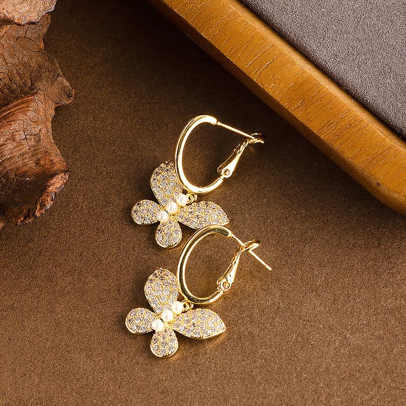 Tiktok online popular live broadcast of the same type of full diamond pearl butterfly earrings earrings simple and high-grade earrings