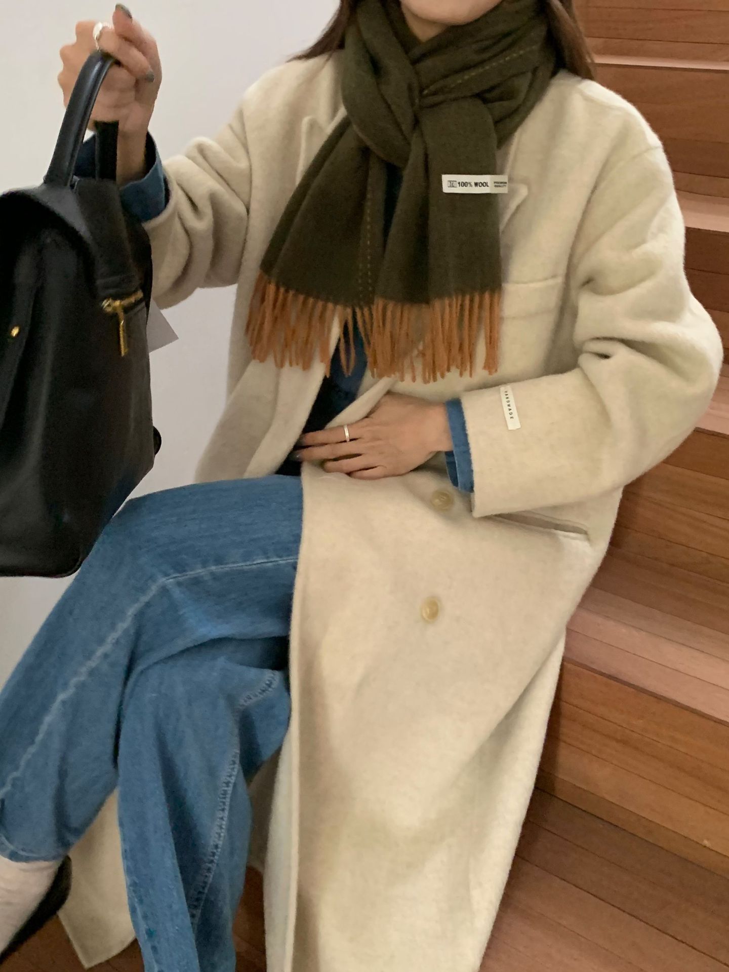 Sciarpa da coppia in edizione stretta, calda, versatile, coreana, invernale, da donna, in 100% lana, tinta unita, semplice, double face