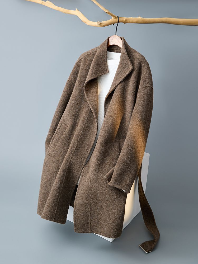 Men's Wool Coat 2025 New Autumn High-End Simple Korean Style Mid-Length Trench Coat Double-Sided Woolen Jacket Trendy