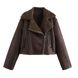 Giacca da motociclista alla moda in pelliccia sintetica: cappotto corto in poliestere con pannelli a contrasto, colletto a punta e chiusura con bottoni per la moda streetwear