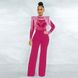 Tuta da donna alla moda, sexy, casual, sottile, con collo alto, trasparente, con strass e nappe