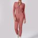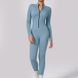 Tuta intera aderente da yoga e fitness a coste elastiche ad asciugatura rapida per donna con cerniera