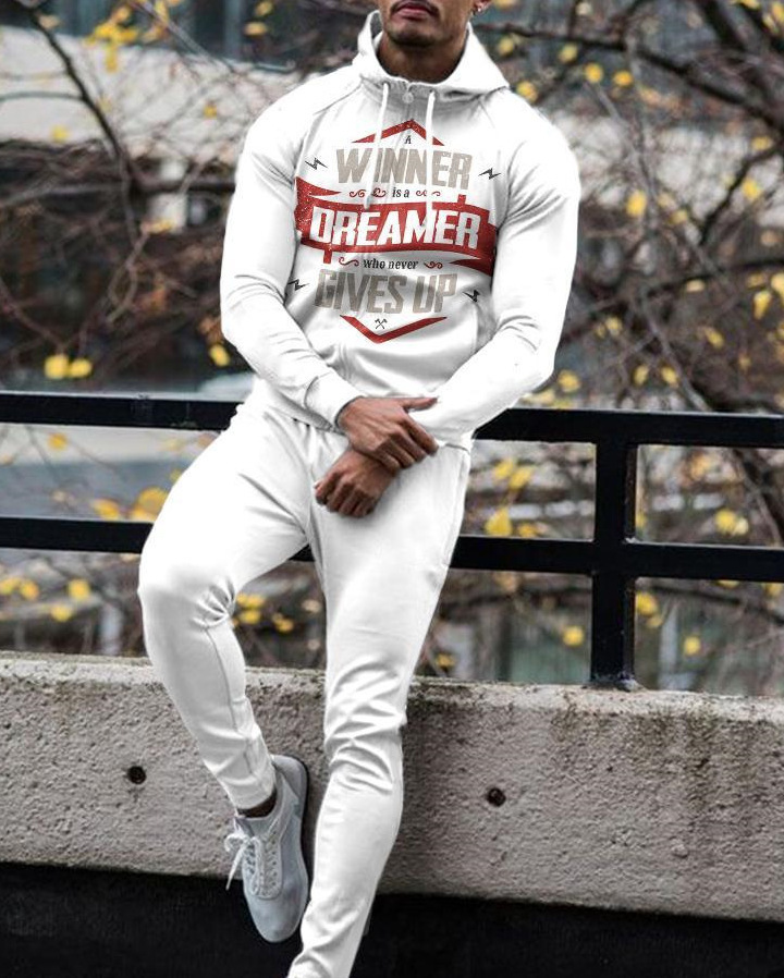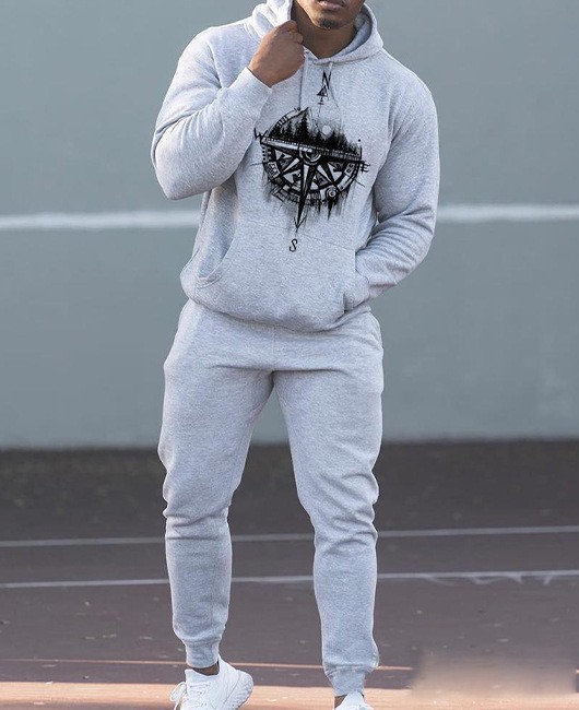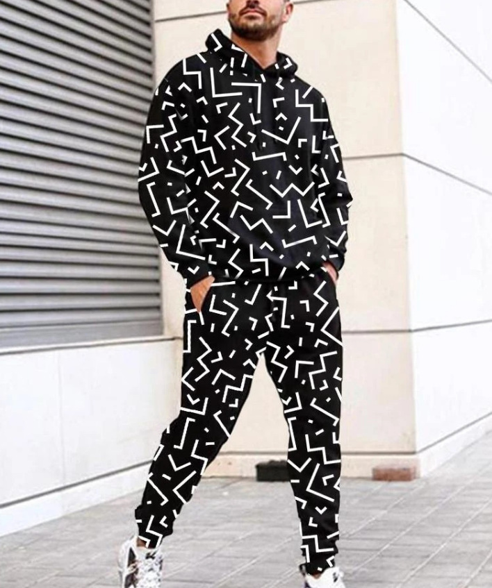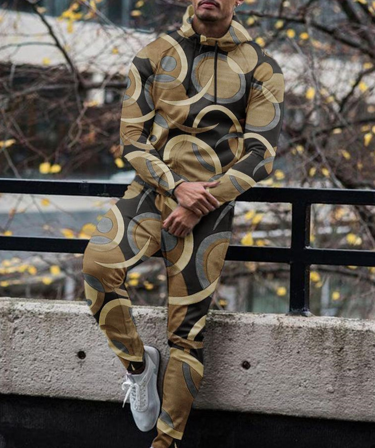 Tuta sportiva autunno e inverno moda colore bloccato casual felpa con cappuccio stampata in 3D pantaloni set due pezzi uomo