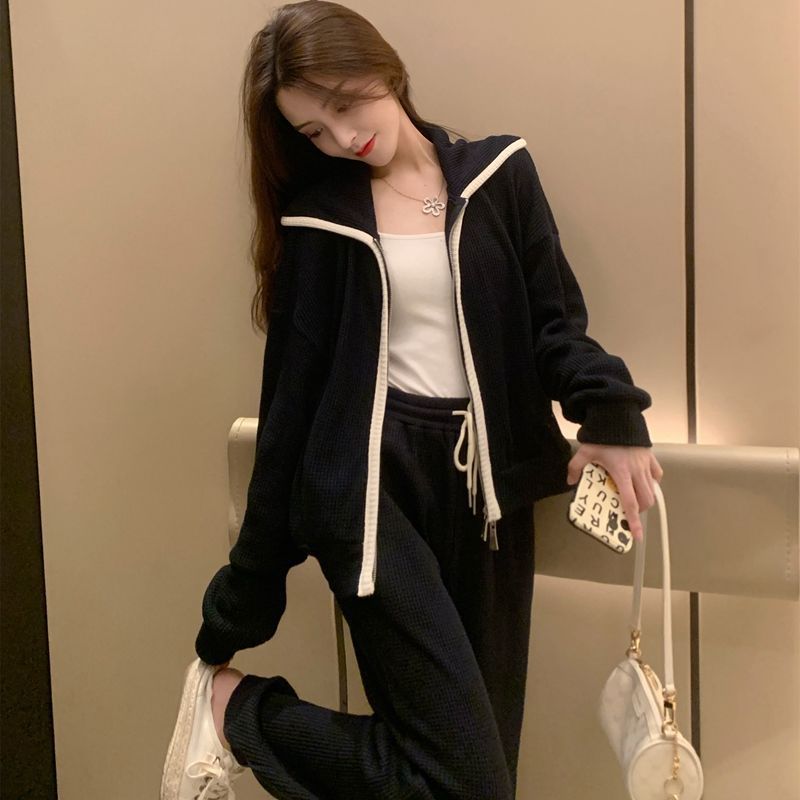 2025 Autumn Women's Casual Sports Suit Korean Style Loose Fashionable Two-Piece Set for Students Running Trendy