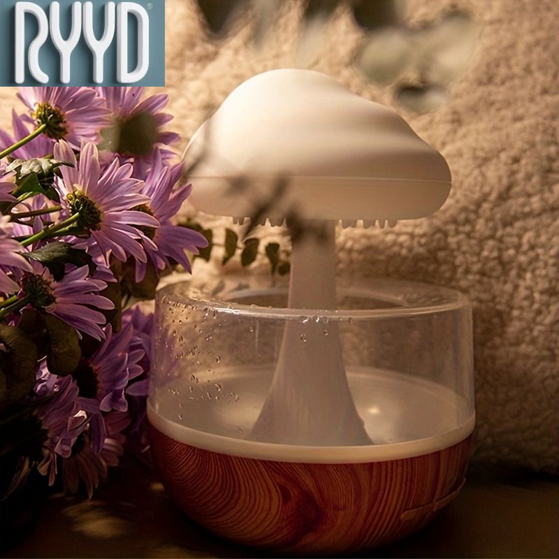 Umidificatore RYYD a forma di fungo da 1 pezzo con 7 luci LED colorate, decorazione per il relax in camera da letto tranquilla, luce notturna a forma di nuvola di pioggia, luci,
