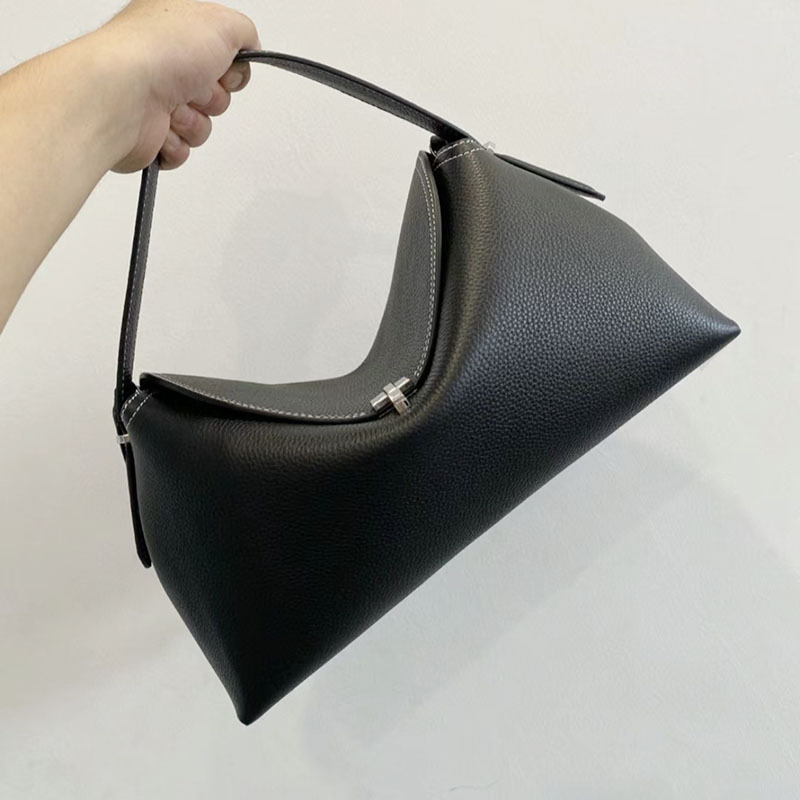 Una borsa toteme con patta in pelle di vacchetta dal design di nicchia, Savi, la stessa fibbia a T, borsa a tracolla singola di grande capacità