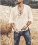 2024 New Men's Summer Cotton Hemp Collar Beach Shirt Long Sleeve Solid Color Hawaiian Holiday Clothing Price: 24