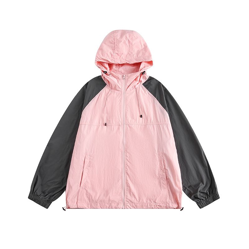 Giacca con cappuccio e maniche con protezione solare ANS Amican di qualità imbattibile per uomo, design sottile, giacca in pelle larga patchwork UPF50+.