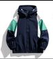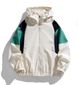 Giacca a vento unisex con cappuccio color-block – Giacca oversize alla moda per uomo e donna, cappotto casual leggero con cerniera (beige/blu navy/nero, S-3XL))