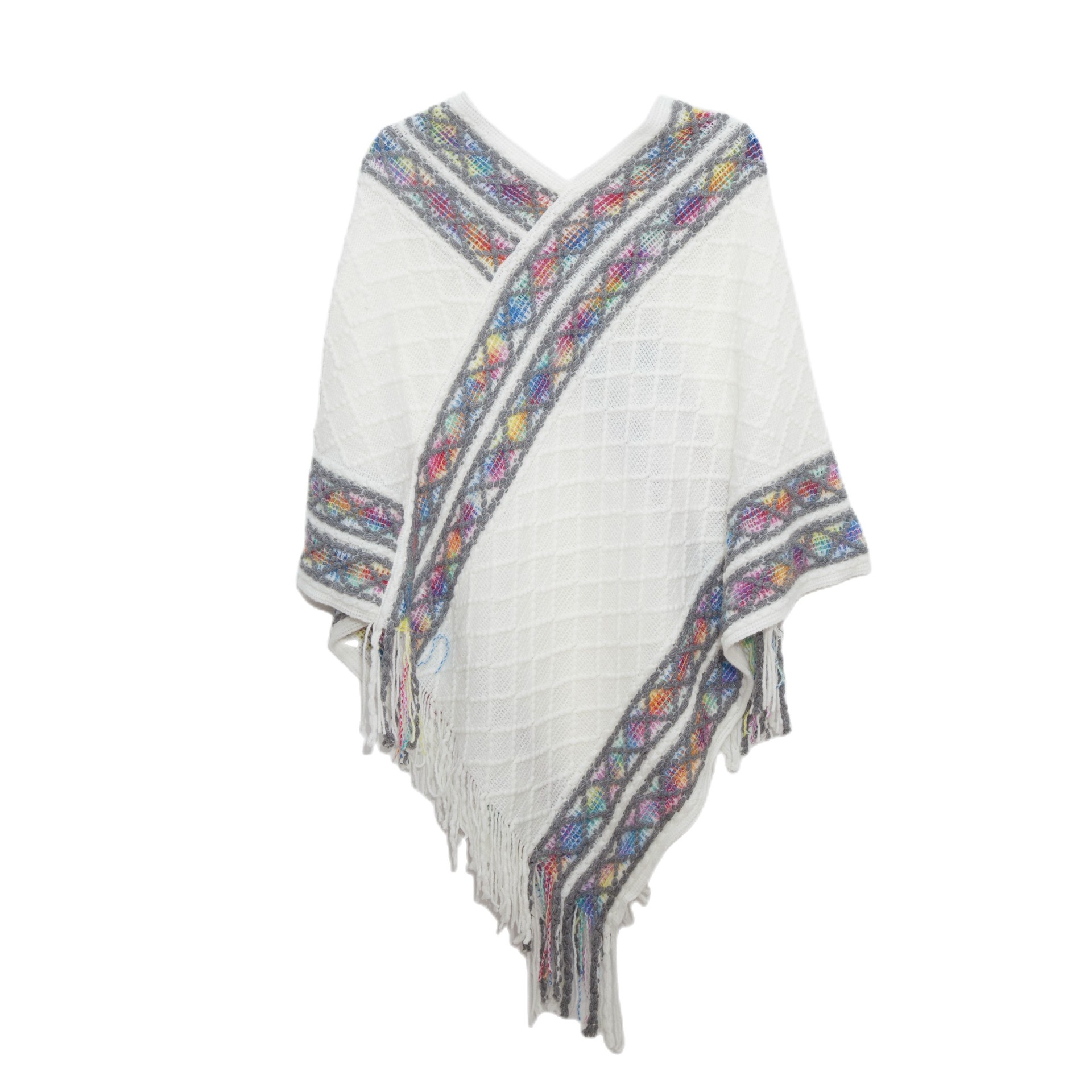 Mantella unisex vintage in maglia tinta unita in stile etnico