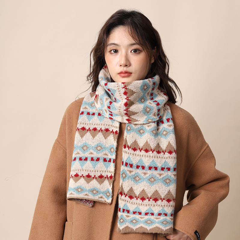 Sciarpa femminile in lana boema ispessita migliorata, stile etnico Xizang, sciarpa autunnale e invernale
