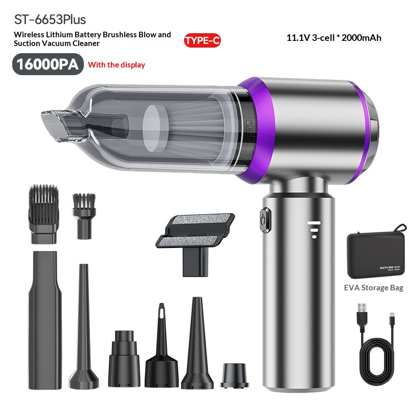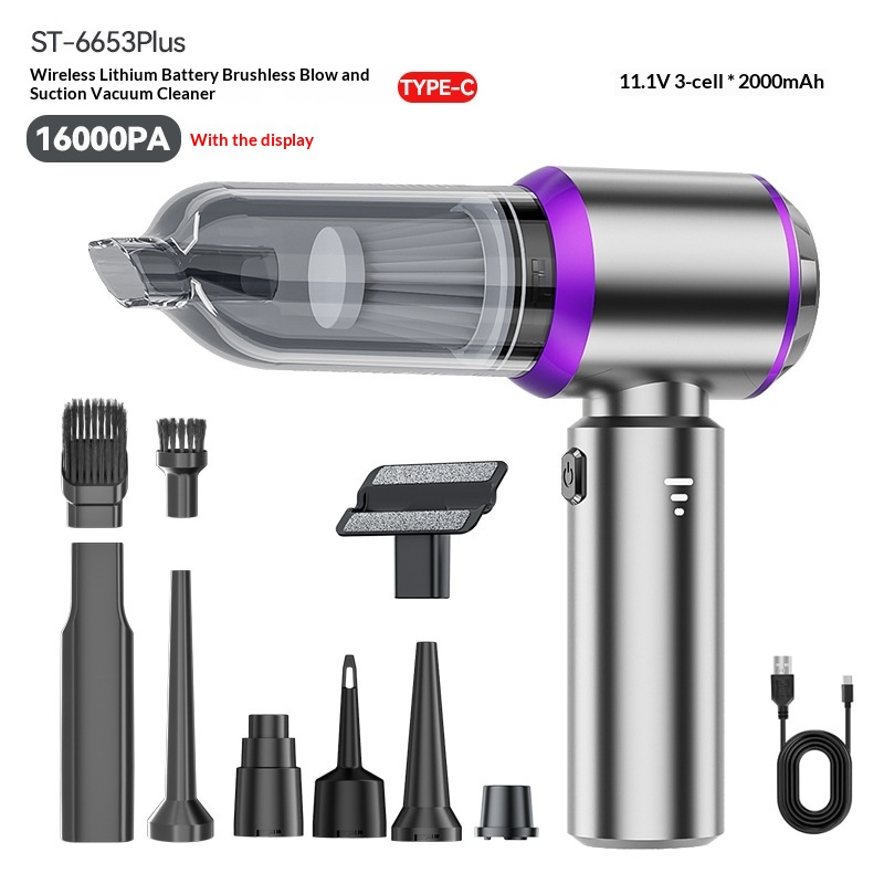 Car Vacuum Cleaner Brushless High Power Super Strong Three-Speed Adjustable Battery Display Handheld Blowing and Suction Integrated for Home and Car Use