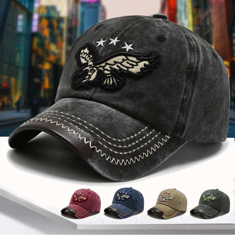 Old washed denim baseball cap for women with street embroidery, eagle duckbill cap for spring and autumn hats for men