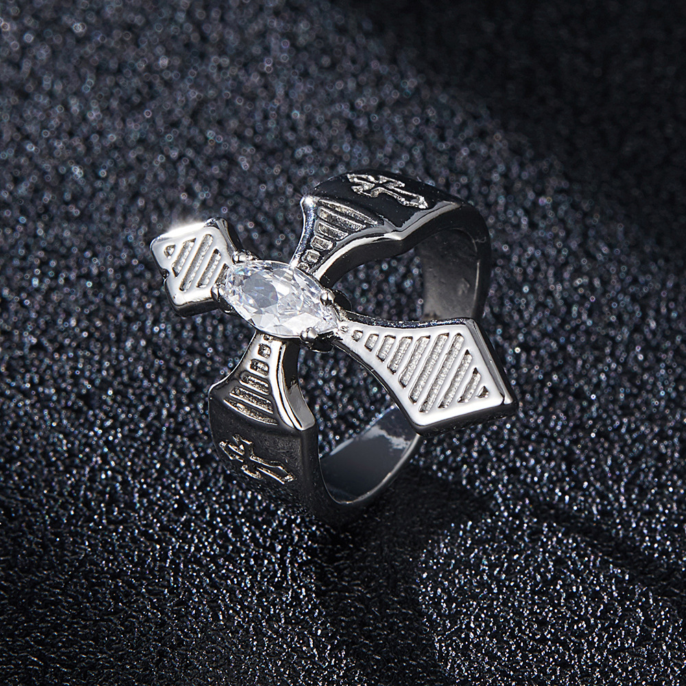 Hot selling cross ring with personalized design sense, zirconia cross opening ring