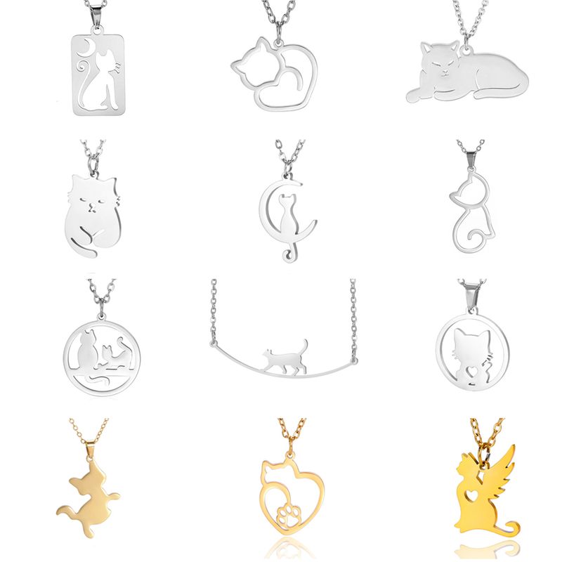 Vendita calda Unift Collana in acciaio inossidabile con gatto per donne e ragazze, ciondolo per gattini, collana alla moda, gioielli carini per amanti degli animali, festa