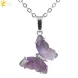 CSJA Vinage Butterfly Crystal Necklace for Women Natural Stone Amethysts Pendants Stainless Steel Chain Necklaces Jewelry H158