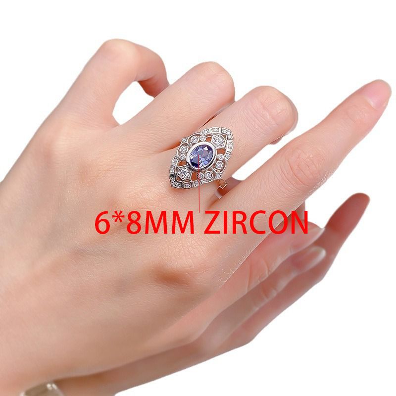 Vendite calde TFGLBU Vintage 6*8mm Bule Zircon Solido Anello in Argento per Donna Trendy Shine Gem Originale Festa Incontri Fascia di Alta Qualità