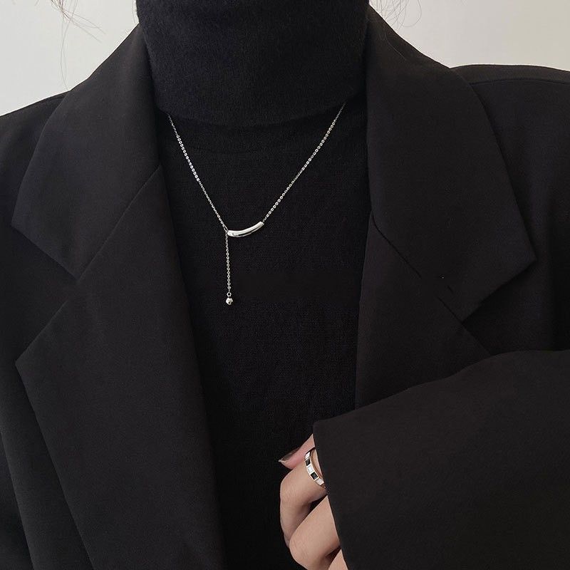 Cold and indifferent wind, curved smile, sweater chain, simple accessories for women in autumn and winter, hoodie chain, ins, light luxury and niche necklace
