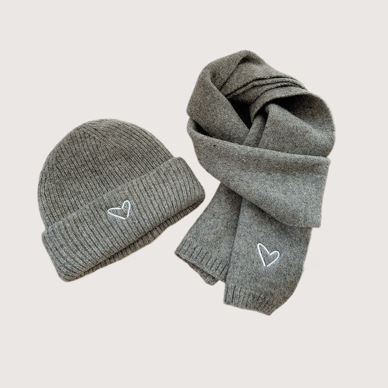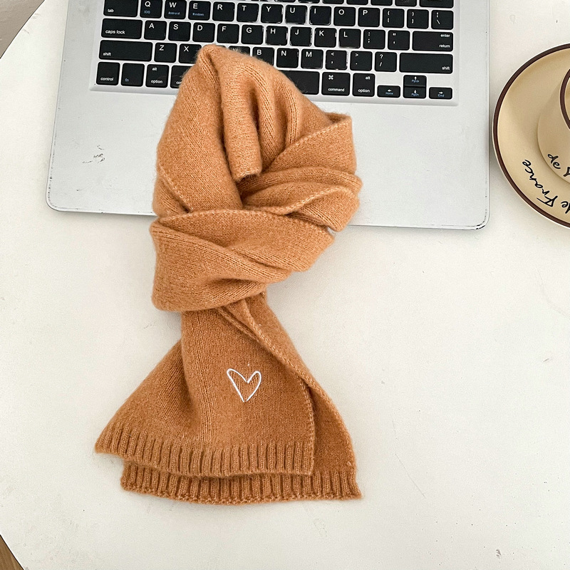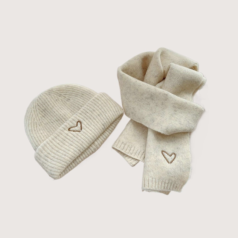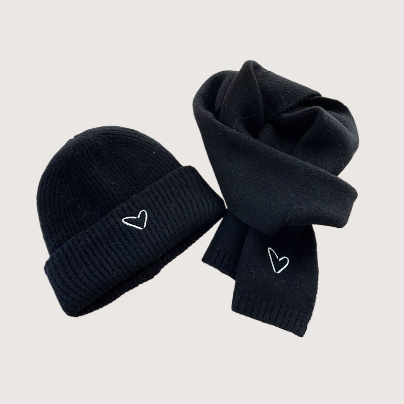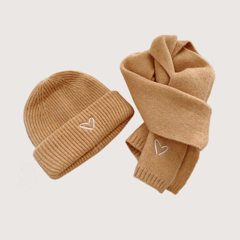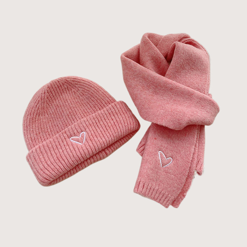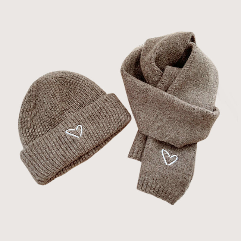 Versione coreana, berretto e sciarpa lavorati a maglia per bambini con ricamo, 2 pezzi, per ragazzi e ragazze, autunno e inverno, colore unito