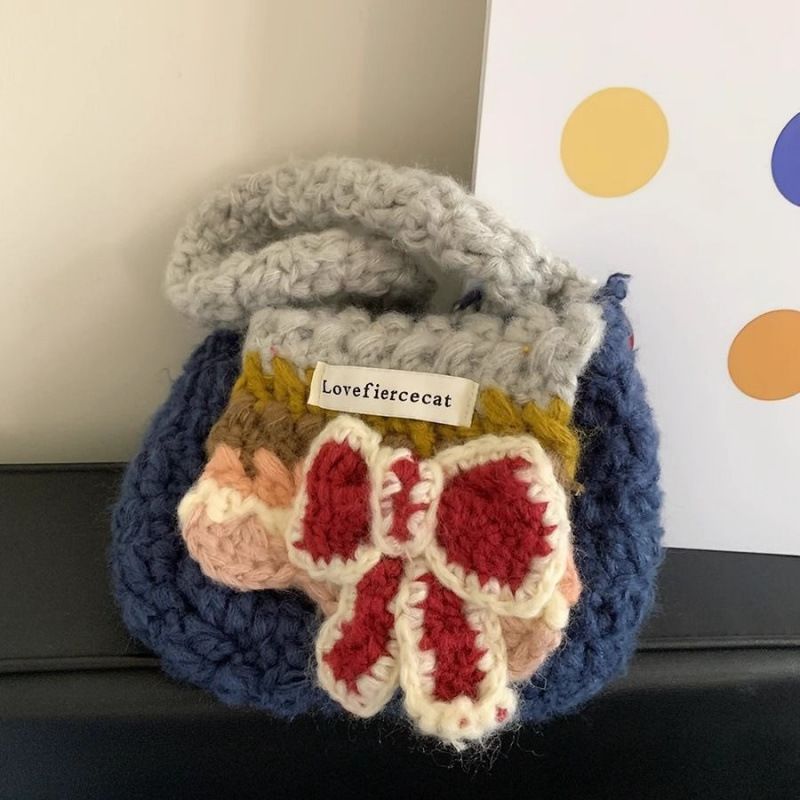 Korean version sweet woven butterfly knot yarn handbag for women, 2024 autumn and winter new cute and versatile knitted crossbody bag