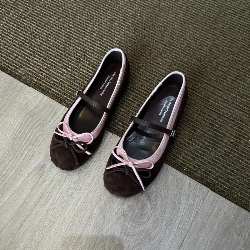 Sheepskin Version~ Round Toe Fairy Style Bowknot Single Shoes for Women 2025 New Flat Ballet One-Strap Mary Jane Shoes