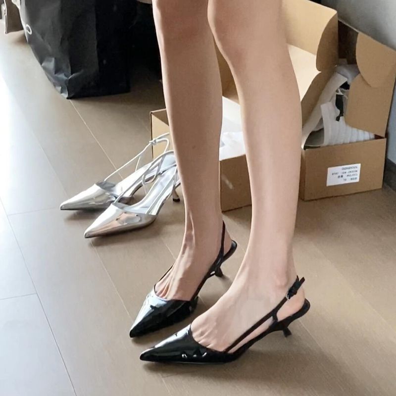 Versione in pelle di pecora ~ Stupende scarpe estive da donna con tacco a spillo in vera pelle, stile francese, piccole, con tacco a gatto