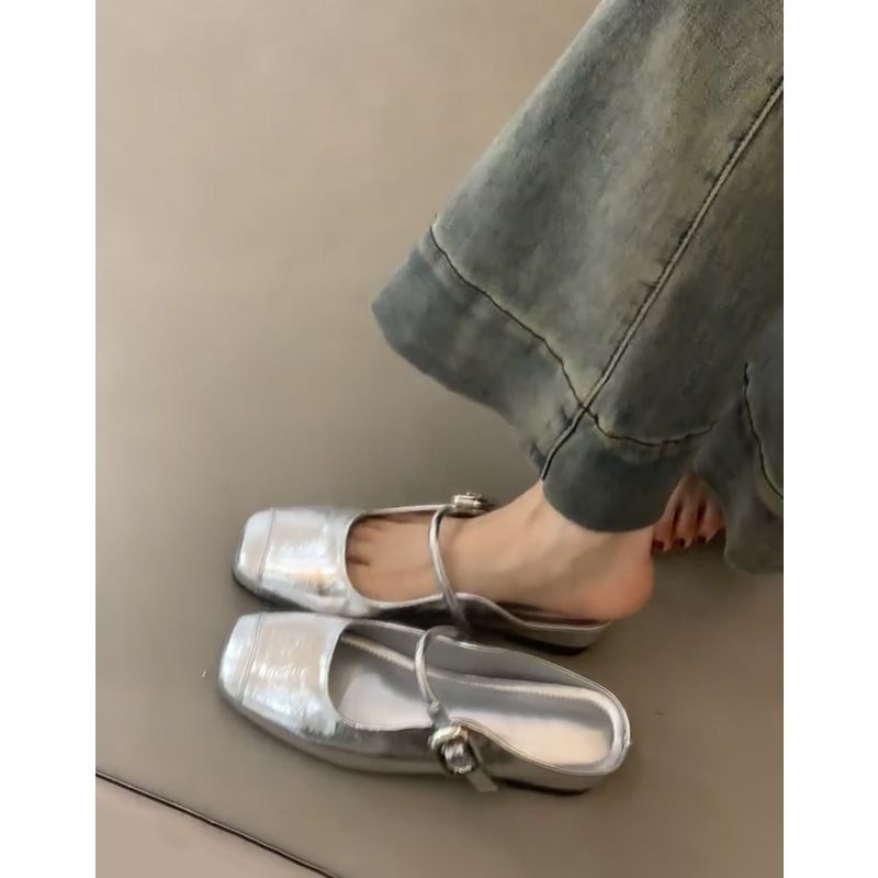 Versione Lan Cabinet ~ Pantofole a mezza punta chiuse in pelle morbida stile francese con suola spessa color argento per donna 2025 Nuove muli