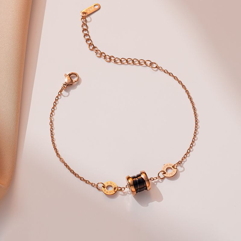 Japanese and Korean versions of titanium steel spring black ceramic rose gold plated bracelet, trendy student personalized bracelet