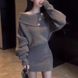 Vestito aderente da donna con spalle scoperte, autunno inverno 2023, nuovo abito in maglia alla moda, con spalle scoperte, vestibilità slim, piccolo abito aderente