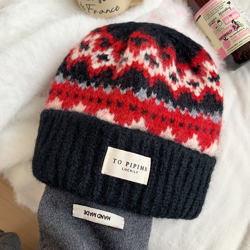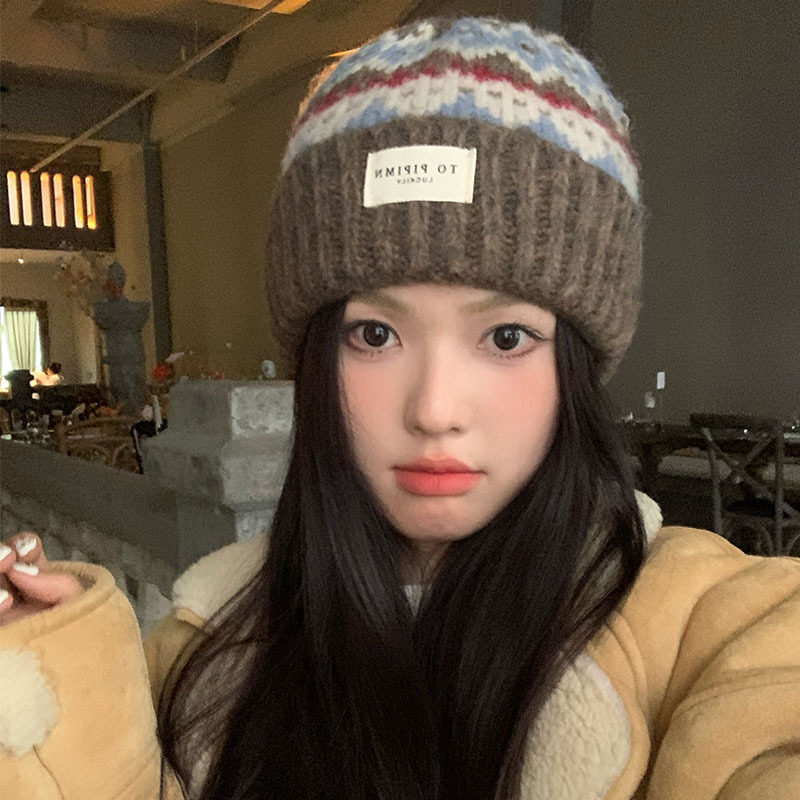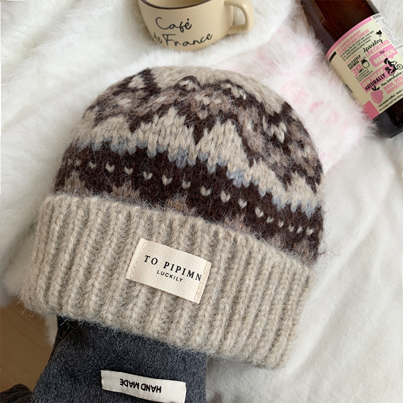 Vintage Atmosphere Knitted Wool Hat for Women, Loose Fit for Large Head Circumference, Warm Ear Protection Hat, Face Slimming Hat for Autumn and Winter