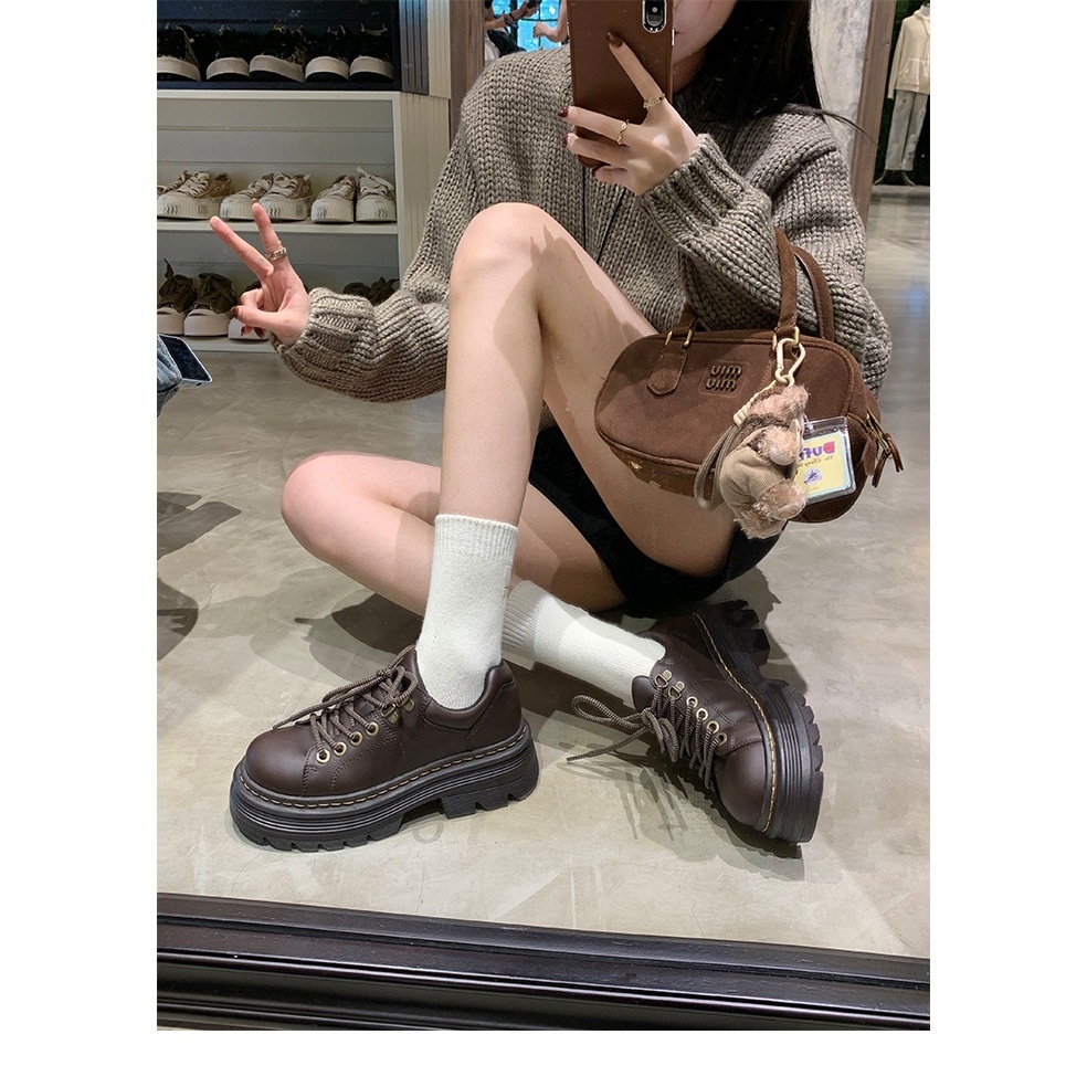 Scarpe da donna in pelle di mucca Voyage, versatili, singole, in stock, classiche britanniche, stile classico, con punta tonda, piccole, con tacco basso, stringate Derby