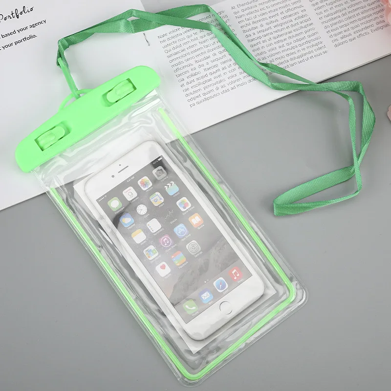 Waterproof PU Phone Case Bag Fluorescent Lanyard with Durable Material Seal