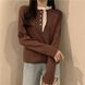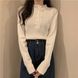 Western style sweet sweater with unique design, lace wood ear knit long sleeved apricot base shirt, autumn and winter inner wear