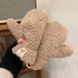 Product Features:This glove has a relatively simple design, and the color is also a warm tone suitable for autumn and winter. There is a small bear cloth label on the wrist, which is both simple and fashionable and cute. It also comes with a lanyard.